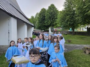 W ramach Białego Tygodnia podejmowany był temat wdzięczności Panu Bogu. Ks. Krzysztof w homilii przypomniał za co mamy być wdzięczni Bogu oraz jak wielkim darem jest Eucharystia. Odniósł się również do objawień Anioła Pokoju w Fatimie.