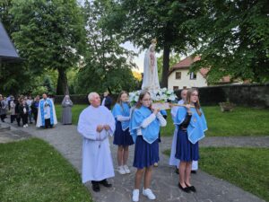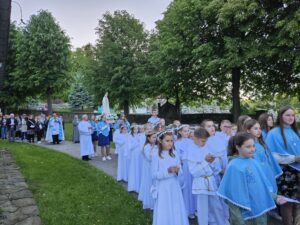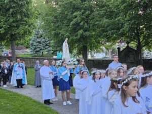 W poniedziałek 13 maja odbyło się pierwsze nabożeństwo Fatimskie w tym roku udziałem dzieci pierwszo-komunijnych, które przeżywają Biały Tydzień oraz uczniów klas VIII w ramach ich przygotowania do przyjęcia sakramentu bierzmowania. Podczas świętej modliliśmy się również w intencji uczniów klas ósmych którzy we wtorek rozpoczynam swój egzamin kończący szkołę podstawową.