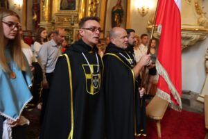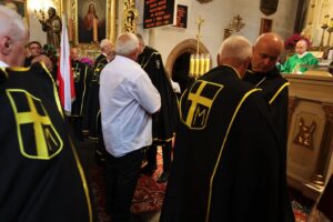 Brat Jacek Skoczeń po zakończonym obrzędzie przyjęcia nowych Braci do Zakonu odczytał Dekret o utworzeniu Chorągwi pw. Znalezienia Krzyża Świętego w naszej parafii i przekazał go na ręce Księdza Kapelana. Ostatnim elementem uroczystości było przekazanie sztandaru narodowego.