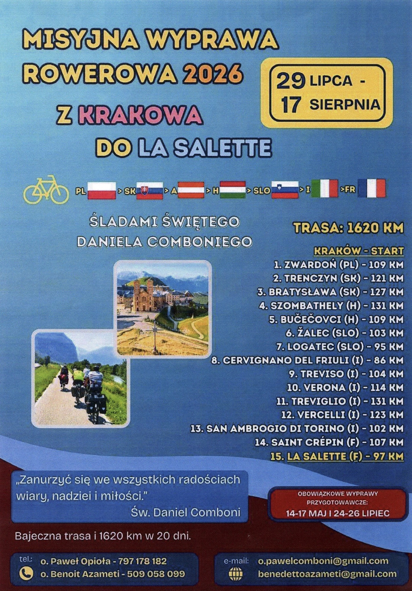 – poniedziałek – wspom. św. Józefa Sebastiana Pelczara, bpa; na Mszę św. o godz. 18.00 w kościele zapraszamy dzieci kl. III wraz z rodzicami na kolejną katechezę przygotowującą do pierwszej Komunii Św. Podczas nabożeństwa dzieci otrzymają pobłogosławione modlitewniki;